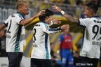 8月から負けを知らない柏は、13分という早い時間、マテウス・サヴィオのコーナーをジエゴが先制ヘッドを決めて活気づいた。