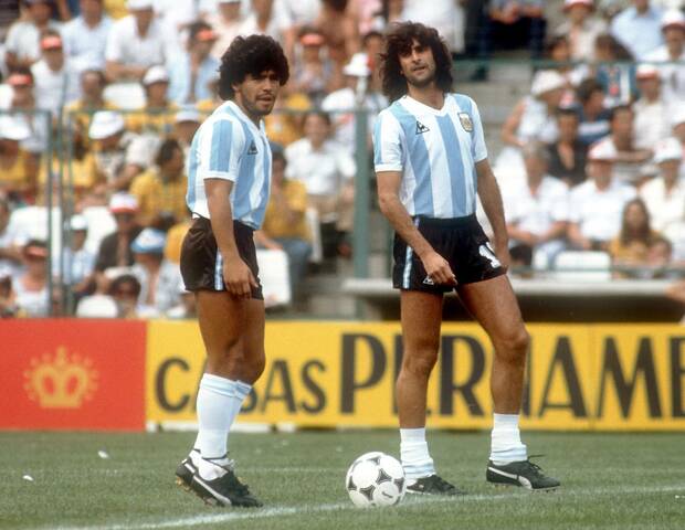 1978年大会でアルゼンチンを優勝に導いたマリオ・ケンペス(右)。1982年のスペインW杯では、天才ディエゴ・マラドーナと共にピッチに立った。マラドーナの神の手&5人抜きゴールが生まれるのは、1986年のメキシコ大会である。写真:アフロ
