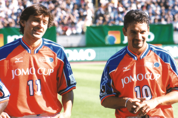 1990年イタリア大会では、得点王スキラッチとのコンビでイタリア代表を牽引するも、アルゼンチンに準決勝で敗退。1994年アメリカ大会では、ブラジルとの決勝戦でPKを外し、悲劇のヒーローになった。日本には、1999年、2000年のJOMOオールスターカップのために来日した。写真は、1999年に来日したときのもの。撮影/山崎洋