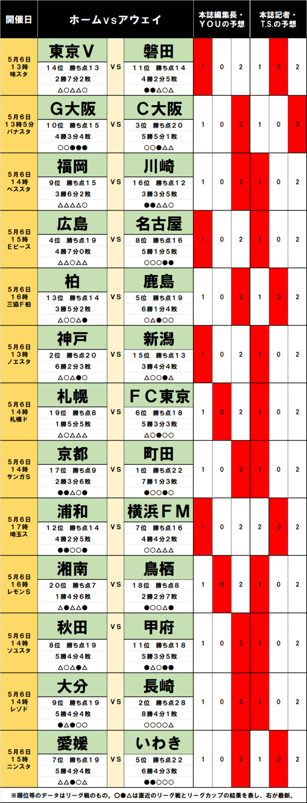 100円で億「サッカーくじ」toto予想(第1451回)5月6日 GW3連戦のカギは「移動」! 大阪ダービー、首位・町田VS観光地・京都、ホーム連戦の福岡VS川崎、アウェイ連戦の磐田VS東京Vに波乱! (3/3ページ) 1ページ目から読む サッカー批評編集部 J1 J2 セレッソ大阪 アビスパ福岡 ジュビロ磐田 Jリーグ 2024.05.04 【画像】100円で「億ゲット」のチャンス!『サッカー批評』編集部「5月6日のJ1J2」toto予想はコチラ↓ 画像/サッカー批評WEB編集部 【この画像の記事に戻る】 1 2 3 さっかーひひょうへんしゅうぶ サッカー批評編集部 1998年4月に創刊。「素晴らしいプレーと拮抗する興奮を、言葉で伝えることができたらと思う。サッカーをプレーする時、観戦する時と同様の情熱を持って、読んでもらえることを願っている」という創刊時の精神をそのままにWebでも記事を展開。日本サッカー協会100周年にあたっての「JFA100周年表彰」の媒体賞を受賞。 関連記事 「嘘やろ!」「もう訳わかんない…」J1福岡に所属するイラン人FWの70m圧巻“スーパーロング弾”が常識外れ!「ロングにしても遠すぎる」「チアゴサンタナを超えるとは」の声 サッカー批評編集部 「思ってた以上にマントだわ!笑笑笑」J2甲府が新グッズ「タオルdeマント」を発表!「めっちゃ欲しい」「これはヴァンフォーレ甲府を背負う覚悟」などの声 サッカー批評編集部 「こんな特技も!」「けん玉も上手いのか長谷川唯はw」世界王者マンCの男女スター選手の“けん玉対決”が白熱!「ストーンズ普通に上手い」「紅白、出ますか?」の声 サッカー批評編集部 「ねえしんどいほんとに」J2栃木の「顔面Tシャツ」にファンもおののく!「これはマジでセンス良すぎ」「納豆のTシャツかと思っちゃいました」などの声 サッカー批評編集部