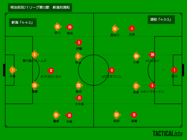 3連勝【ヘグモ浦和がさらなる上昇気流に乗るために必要なこと】(1)システムの「かみ合わせ」と「浮いた」グスタフソン、サンタナの「先制点」試合分析 (3/3ページ) 1ページ目から読む 川本梅花 2024.05.15 【画像】「中島と藤原、前田と早川が激突」アルビレックス新潟VS浦和レッズ【システム完全図解】 図表作成/川本梅花 【この画像の記事に戻る】 (2)へ続く 1 2 3 かわもとばいか 川本梅花 青森県出身。 ジュネーヴ大学文学部言語学科博士課程。得意分野は戦術(試合分析)とノンフィクション。地域リーグからJ1リーグまで守備範囲が広い。雑誌『サッカー批評』においては、現在水戸ホーリーホックのゼネラルマネージャーを務める西村卓朗が現役を引退するまでの物語「哲学的志向のフットボーラー 西村卓朗を巡る物語」を連載していた。個人サイト「川本梅花 フットボールタクティクス(https://www4.targma.jp/baika/ )」。 新潟に勝って2連勝【ヘグモ浦和が上昇気流に乗るために必要なこと】 3連勝【ヘグモ浦和がさらなる上昇気流に乗るために必要なこと】(2)「覚醒した」ヘグモ秘蔵っ子、65分の「追加点」と69分の前田直輝の「ダメ押し弾」試合分析 3連勝【ヘグモ浦和がさらなる上昇気流に乗るために必要なこと】(3)75分87分の失点と渡邊凌磨の「クリア」、「後半登場」大畑歩夢、小泉佳穂の「後悔」試合分析