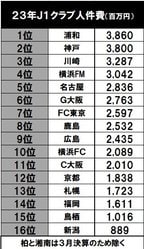3位は川崎フロンターレの32億8700万円で、横浜F・マリノスが4位で30億4200万円。この4チームが、人件費30億円超えのチームとなった。昨季3位のサンフレッチェ広島の人件費は9位で24億3500万円、昨季5位の鹿島アントラーズの人件費は8位の25億3200万円となっている。