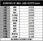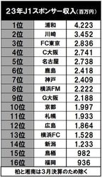 スポンサー収入でJ1クラブの上位に立ったのは、浦和レッズ。42億2300円を記録し、100億円を超える売上高を支えた。J1クラブの2位は川崎フロンターレで、34億5200万円。3位はFC東京で28億3600万円となった。