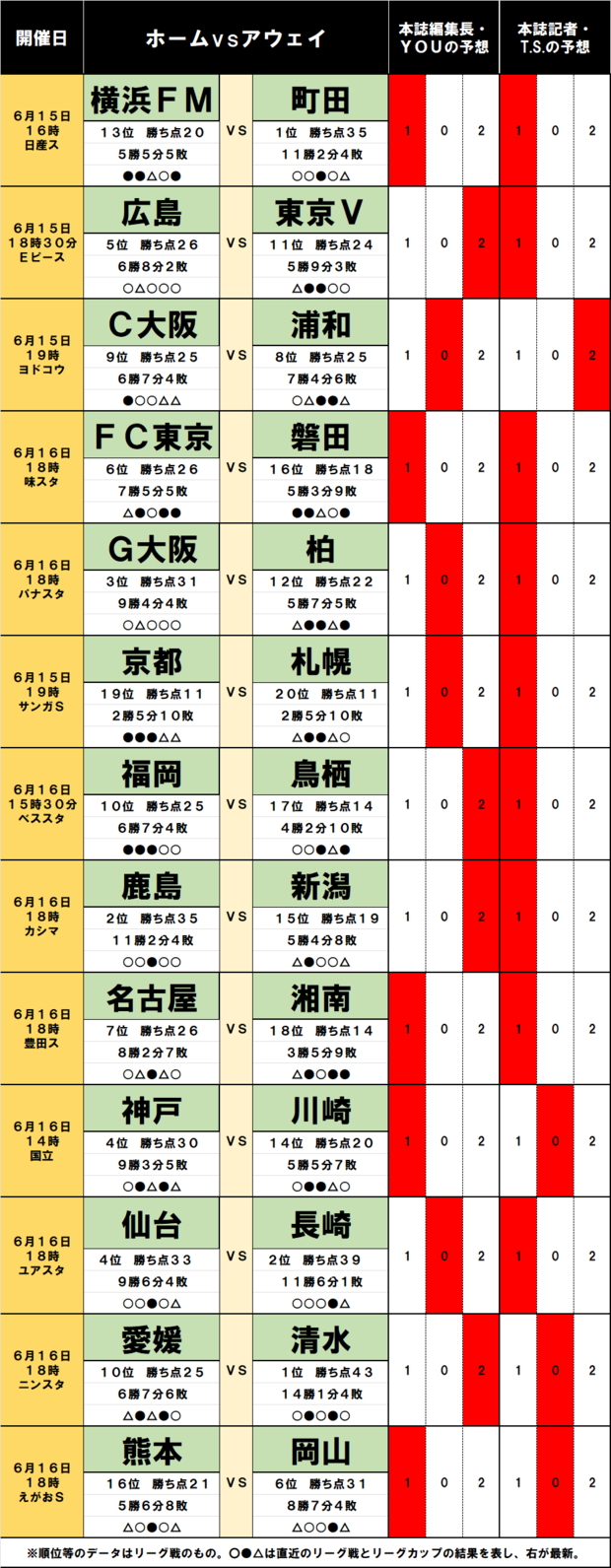 100円で億「サッカーくじ」toto予想( 第1462回) 6月15・16日 首位・町田に「大問題」、「逆襲」の横浜FM、2位・鹿島が「ついに」、「代表DF離脱」C大阪が勝点で並ぶ浦和に、5位・広島から11位・東京Vまで「2差」の大混戦! (3/3ページ) 1ページ目から読む サッカー批評編集部 J1 J2 横浜F・マリノス FC町田ゼルビア 浦和レッズ Jリーグ 2024.06.13 【画像】100円で「億ゲット」のチャンス『サッカー批評』編集部「6月15日16日のJ1J2」toto予想はコチラ↓ 画像/サッカー批評WEB編集部 【この画像の記事に戻る】 1 2 3 さっかーひひょうへんしゅうぶ サッカー批評編集部 1998年4月に創刊。「素晴らしいプレーと拮抗する興奮を、言葉で伝えることができたらと思う。サッカーをプレーする時、観戦する時と同様の情熱を持って、読んでもらえることを願っている」という創刊時の精神をそのままにWebでも記事を展開。日本サッカー協会100周年にあたっての「JFA100周年表彰」の媒体賞を受賞。 関連記事 FC東京「頭が痛い」松木玖生、「期待したい」強い川崎Fの再来、優勝争いは「夏の移籍」次第、20チーム制への「疑問」【J1「まさかの前半戦」と「マジかの後半戦」大激論】(7) 大住良之 後藤健生 「オーダー紹介プレミアやん」J1首位クラブを下剋上した筑波大学の選手紹介がプレミアリーグを彷彿させると話題に! 天皇杯での衝撃勝利で反響大きく注目浴びる サッカー批評編集部 J1首位クラブが大学生チームに敗退など、天皇杯2回戦でJ1・3チームがカテゴリー下チーム敗れる波乱! 11得点を奪ったJ1クラブ、9得点のJ2クラブなど力を見せた試合も サッカー批評編集部 「化け物ヘッドすぎて震えた」上田綺世が宙を舞った強烈ヘディング先制弾にファン脱帽!「えっぐい綺世かっこよ」「いや〜かっちょよくて美しい」の声