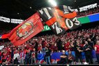 スタジアムはEURO用に改造されて、狭かったゴール裏はフェンスが撤去されて広くなっていた。