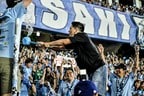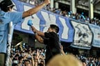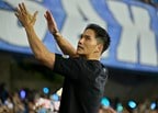 そんな中で、空では航空自衛隊のアクロバット飛行チーム「ブルーインパルス」が展示飛行を行ったが、地上では俳優・市原隼人が盛り上げた。川崎と広島の試合前に始球式で川崎市出身の市原が豪快な市民の歌を斉唱、続けて、華麗なキックを見せると、そのまま熱いサポーターが集まるGゾーンへと一目散にダッシュ。そして、サポーターから巨大バケツごと水を浴びせかけられた。