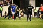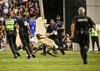 この不審者はすぐに捕らえられたが、今度はフランス守備側のゴール裏からも不審者が乱入。2人の警備関係者が追いかける中、猛ダッシュして逃げる。途中、舌を出して挑発する様子も見せたが、メインスタンド前で確保された。