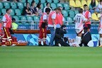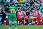 相手選手との接触があったわけではないと見られ、そのままプレー続行が不可能に。主審やメディカルスタッフも近寄る中で、チームメイトらとの会話もしたが、結局、そのまま担架で運ばれて無念の途中交代となった。