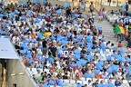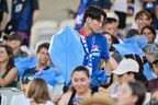 その結果、日本代表のベンチがあるゴール裏の一角からメインスタンドにかけて、青一色にジャック。サムライブルーを応援するためのまさかの光景が作り上げられたのだ。