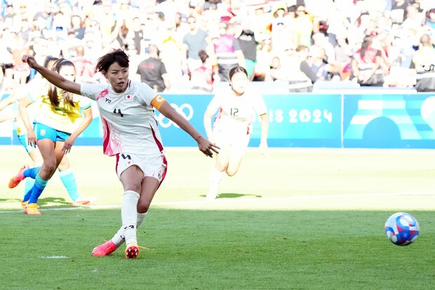 ブラジル戦でPKを成功させた主将の熊谷紗希。メンタルは最強だろう。撮影/渡辺航滋(Sony α‐1)