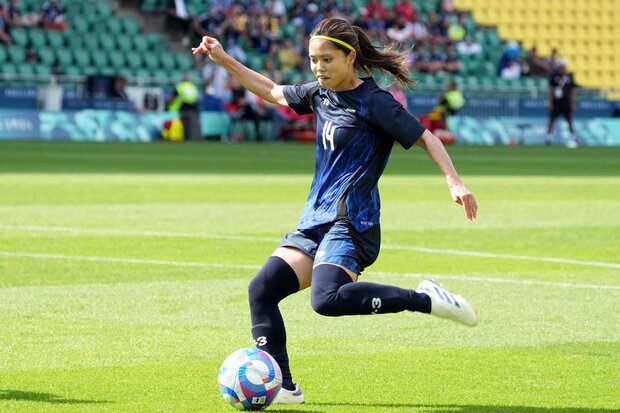 前半22分、植木理子への絶妙なスルーパスで、浜野まいかの先制ゴールを演出した「フィールドの今田美桜」こと長谷川唯。撮影/渡辺航滋(Sony α-1)