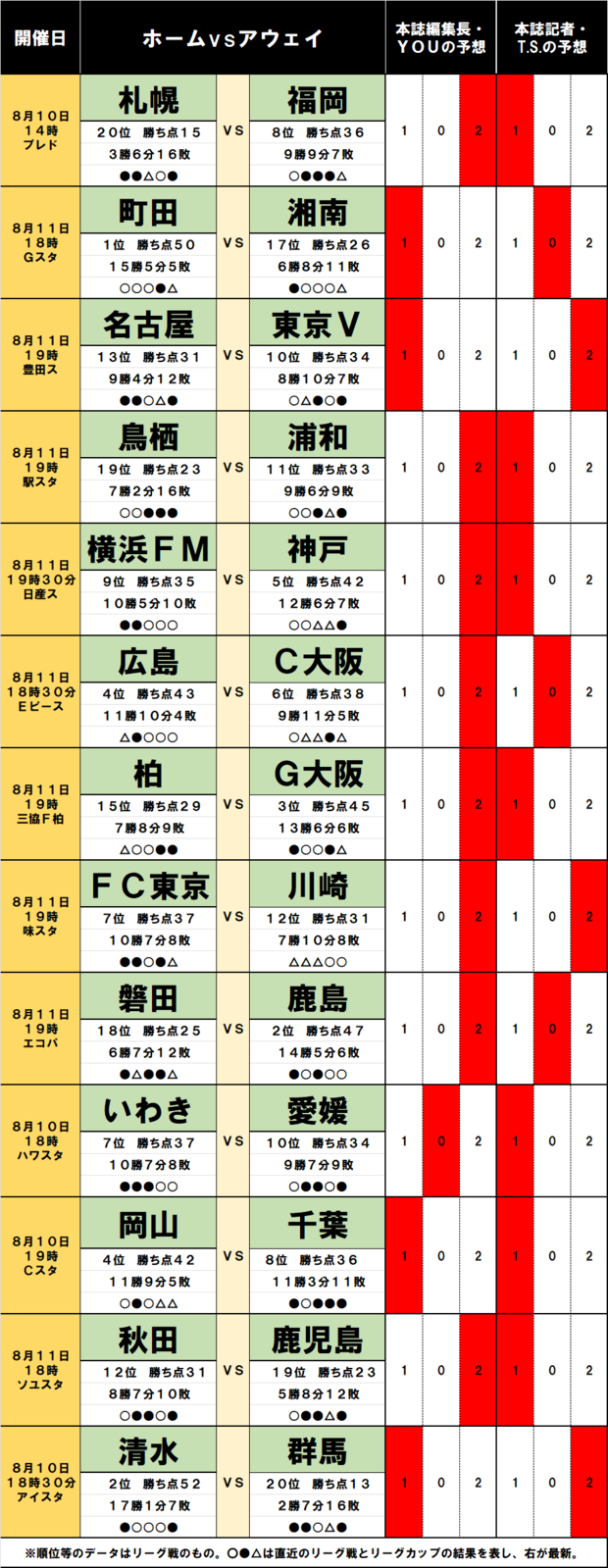 100円で億「サッカーくじ」toto予想(第1472回)8月10・11日 「初ゲーム」札幌が福岡と、鳥栖が「五分」の浦和と、湘南が「負けなし」首位・町田と、「荒療治」横浜FMが王者・神戸と激突、J1再開後の「潮目」を読め! (3/3ページ) 1ページ目から読む サッカー批評編集部 J1 J2 サガン鳥栖 北海道コンサドーレ札幌 湘南ベルマーレ Jリーグ 2024.08.09 【画像】100円で「億ゲット」のチャンス『サッカー批評』編集部「8月10日11日のJ1J2」toto予想はコチラ↓ 画像/サッカー批評WEB編集部 【この画像の記事に戻る】 1 2 3 さっかーひひょうへんしゅうぶ サッカー批評編集部 1998年4月に創刊。「素晴らしいプレーと拮抗する興奮を、言葉で伝えることができたらと思う。サッカーをプレーする時、観戦する時と同様の情熱を持って、読んでもらえることを願っている」という創刊時の精神をそのままにWebでも記事を展開。日本サッカー協会100周年にあたっての「JFA100周年表彰」の媒体賞を受賞。 関連記事 【中断明け初戦で鳥栖に3-0。町田に3差と肉薄した鹿島の今(2)】夏場の省エネに適した柴崎・三竿コンビ。知念と樋口含め、ボランチの複数選択肢を今後にどう生かすのか 【中断明け初戦で鳥栖に3-0。町田に3差と肉薄した鹿島の今(1)】「右SBが7点はなかなかできない」と、三竿も感心する濃野の高度な得点力……得点のための“サポート体制”も 「安定感は上」小久保玲央ブライアン、「成長著しい」19歳の高井幸大らJリーガーCB3人、「上田綺世を超える」本格CF【パリ五輪ベスト8で分かった「明日のサッカー日本代表」】(2) 後藤健生 「未月が帰ってきたぞ!」全治1年診断の神戸MF齊藤未月の全体練習合流映像が3時間で30万回表示突破!「泣きそう」「ピッチで躍動する姿、待ってます!」とエール続々 サッカー批評編集部