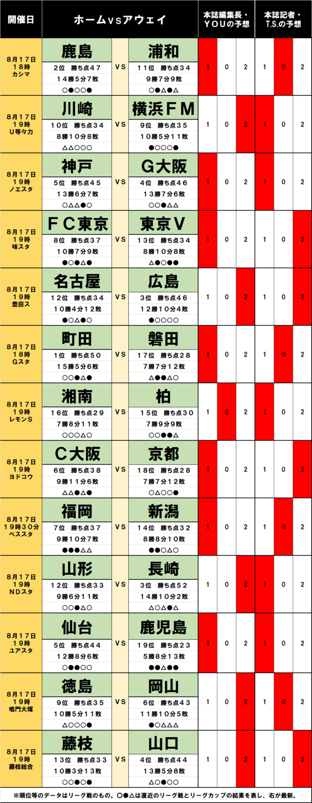 100円で億「サッカーくじ」toto予想( 第1473回) 8月17日 週末4つのダービーは「下剋上」に! 関東では川崎、東京Vが「笑い」、関西ではG大阪、C大阪が「涙する」 (3/3ページ) 1ページ目から読む サッカー批評編集部 J1 J2 横浜F・マリノス FC東京 ヴィッセル神戸 京都サンガF.C. 2024.08.15 【画像】100円で「億ゲット」のチャンス『サッカー批評』編集部「8月17日のJ1J2」toto予想はコチラ↓ 画像/サッカー批評WEB編集部 【この画像の記事に戻る】 1 2 3 さっかーひひょうへんしゅうぶ サッカー批評編集部 1998年4月に創刊。「素晴らしいプレーと拮抗する興奮を、言葉で伝えることができたらと思う。サッカーをプレーする時、観戦する時と同様の情熱を持って、読んでもらえることを願っている」という創刊時の精神をそのままにWebでも記事を展開。日本サッカー協会100周年にあたっての「JFA100周年表彰」の媒体賞を受賞。 関連記事 「足でツンツンw 」「センシティブキックよ」川崎FW家長昭博のチームメイトへの意表を突いた祝福方法が「手荒い笑」と大反響! 喜ぶ若手2人に見せた“足先でのツンツン姿” サッカー批評編集部 「こりゃサポは完全に心掴まれたな」大橋祐紀のイングランドデビュー即ゴールの絶妙ループ弾&渾身ガッツポーズに称賛続々!「サポーターの心掴むの上手すぎ」の声 「キターーーーッ!」J3沼津のコラボユニ『ラブライブ!サンシャイン!!エディション』が「めっちゃいいじゃん」と話題!金沢戦着用に「これは面白くなってきたぞ」の声 サッカー批評編集部 「神演出じゃん」クリスタル・パレスの鎌田大地獲得“漫画化ムービー”が大反響!「えぐい力入れてる映像きた」「入団発表が遅れたの、このムービー作ってたから?笑」の声 サッカー批評編集部
