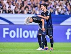 その伊東をチームメイトが祝福。5点目というダメ押し弾ではあったが、伊東の復帰後のゴールということもあって多くの選手が駆け寄った。その直後のことだ。伊東は、南野拓実にハグをされたままサポーター席を振り向く。そして、南野が背中に手を添えた状態で一礼をした。ゴール後に振り向いてまで礼をするのは珍しいことだけに、SNS上でも大きな話題になっていた。
