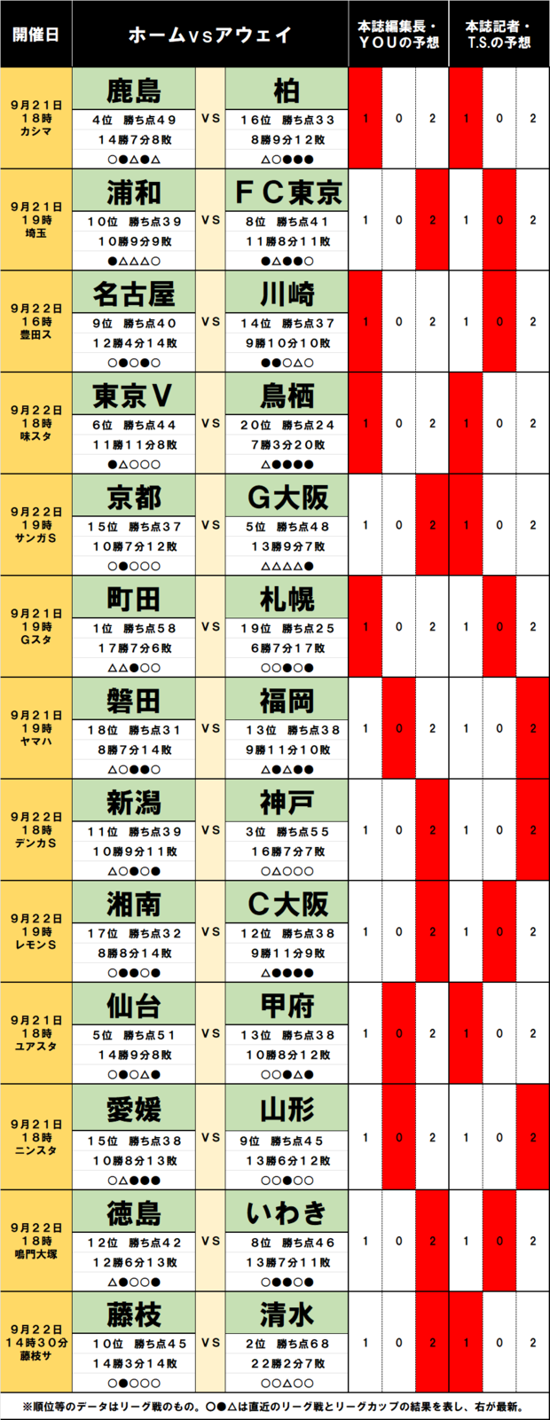 100円で億「サッカーくじ」toto予想(第1481回)9月21・22日 首位チームを「足止めする」落とし穴、順位差10も「関係なし」京阪ダービー、そして「もう一つ」のダービーでも大波乱 (3/3ページ) 1ページ目から読む サッカー批評編集部 J1 J2 北海道コンサドーレ札幌 京都サンガF.C. Jリーグ 2024.09.20 【画像】100円で「億獲り」のチャンス『サッカー批評』編集部「9月21・9月22日のJ1J2」toto予想はコチラ↓ 画像/サッカー批評WEB編集部 【この画像の記事に戻る】 1 2 3 さっかーひひょうへんしゅうぶ サッカー批評編集部 1998年4月に創刊。「素晴らしいプレーと拮抗する興奮を、言葉で伝えることができたらと思う。サッカーをプレーする時、観戦する時と同様の情熱を持って、読んでもらえることを願っている」という創刊時の精神をそのままにWebでも記事を展開。日本サッカー協会100周年にあたっての「JFA100周年表彰」の媒体賞を受賞。 関連記事 「個人的な話になるんですけど…」J1川崎・三浦颯太がACLE蔚山戦で秘めていた古巣・J2甲府への思いとは――「僕が違うチームで蔚山にちょっとやり返した」 サッカー批評編集部 「争奪戦になりそう」J3ヤングプレイヤー賞2か月連続受賞の横山弟・夢樹の絶品プレー集に脚光!「プレー似すぎ!」「兄貴以上に強引な決定力あるなコレ!」の声 サッカー批評編集部 「M1グランプリの登場っぽくて好き」J2徳島の36歳コンビのCM動画に賛辞続々!「ボクシングの世界戦かと思った!「終わったあとがカワイイ」などの声 サッカー批評編集部 「めっちゃ流暢に喋るやん」渡英2か月FW大橋祐紀の圧巻ゴラッソ弾後の“通訳なし”英語インタビューに称賛続々!「こういうのが成功に繋がるんだろうな」の声 サッカー批評編集部