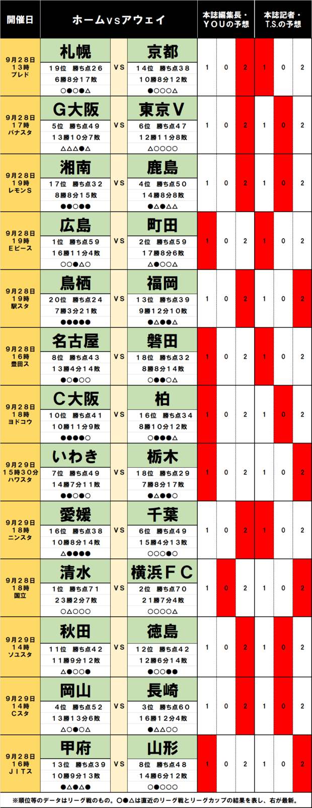 100円で億「サッカーくじ」toto予想( 第1483回)9月28・29日 J1J2ダブル首位決戦、広島と町田「明暗を分ける」新戦力、ホーム無敗の清水を悩ます「呪縛」、混戦の残留争い「引きずり込まれる」チーム (4/4ページ) 1ページ目から読む サッカー批評編集部 J1 J2 FC町田ゼルビア サンフレッチェ広島 清水エスパルス 横浜FC 2024.09.26 【画像】100円で「億獲り」のチャンス『サッカー批評』編集部「9月28日29日のJ1J2」toto予想はコチラ↓ 画像/サッカー批評WEB編集部 【この画像の記事に戻る】 1 2 3 4 さっかーひひょうへんしゅうぶ サッカー批評編集部 1998年4月に創刊。「素晴らしいプレーと拮抗する興奮を、言葉で伝えることができたらと思う。サッカーをプレーする時、観戦する時と同様の情熱を持って、読んでもらえることを願っている」という創刊時の精神をそのままにWebでも記事を展開。日本サッカー協会100周年にあたっての「JFA100周年表彰」の媒体賞を受賞。 関連記事 日本代表監督がリベロを務めた「名門中の名門」の沈滞ムードを一変させた「東京V出身」の監督【昇格プレーオフに名乗り「名門ジェフ千葉」16年ぶりJ1復帰へ】(2) 後藤健生 「このアングルから見ると余計に凄さがわかる笑」J1名古屋の27歳MFの「超絶ダイレクト浮き球パス」をJ公式が英語で世界に発信!「うますぎる!!!!」「やば過ぎないかこれ」の声 サッカー批評編集部 「リーグ得点王」エースの3発でライバル撃沈、「悪くない」ド派手な試合の終わらせ方【昇格プレーオフに名乗り「名門ジェフ千葉」16年ぶりJ1復帰へ】(1) 後藤健生 「サンガ史上最強助っ人」のJ1京都の救世主FWラファエル・エリアスの“4戦連続7発”特製ゴール映像に興奮!「うちが獲ることができていれば、今頃首位」との声 サッカー批評編集部