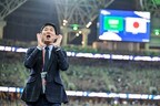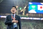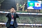 ピッチのコンディションを見て、スタジアムの様子を見て、引き上げるかと思われた指揮官だったが、視線をスタジアムの一角へと移す。そこは、サッカー日本代表のサポーターが青く染め上げるエリアだった。