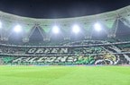 それは、選手入場時のこと。バックスタンドに陣取ったサウジアラビアサポーターが一斉にコレオを作り出したのだ。実は、試合前にそれぞれの席にゴミ袋がかけられていた。緑、黒、白、黄色の4色が用意され、サポーターがそれを広げて掲げることで図柄を文字を浮かび上がらせた。
