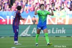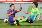 試合終了後、湘南の鈴木章斗はチームの4連勝と自らのゴールをファンとともにセルフィー(自撮り)で祝った。