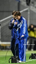 小瀧は選手のウォーミングアップ前にはジャージ姿でピッチに姿を現してトークショーを実施。その後、選手入場の際にはガンバ大阪のユニフォーム姿で現れている。