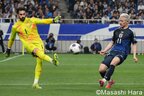 後半も構図は変わらず。勝ち点1の確保が最大の目標となったサウジアラビアは、攻撃に人数をかけずに大きなボールで日本の最終ラインとGKの間を狙うが、鈴木彩艶が冷静に対処した。