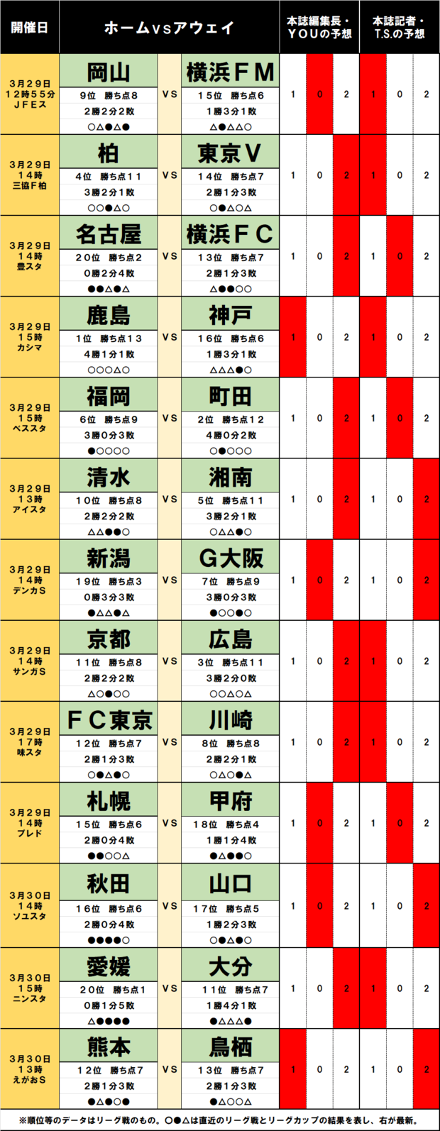 サッカーくじ「toto」予想( 第1524回)3月29・30日(2)優勝候補を悩ませる「ピッチ内外の大問題」、多摩川クラシコ通算成績は川崎が圧倒も…「松橋新監督」FC東京に追い風 (3/3ページ) 1ページ目から読む サッカー批評編集部 J1 J2 サンフレッチェ広島 川崎フロンターレ FC東京 Jリーグ 2025.03.28 ■【画像】100円で「億獲り」のチャンス『サッカー批評』編集部「3月29日30日のJ1、J2」toto予想はコチラ↓ 画像/サッカー批評WEB編集部 ※この画像の記事に戻る 1 2 3 さっかーひひょうへんしゅうぶ サッカー批評編集部 1998年4月に創刊。「素晴らしいプレーと拮抗する興奮を、言葉で伝えることができたらと思う。サッカーをプレーする時、観戦する時と同様の情熱を持って、読んでもらえることを願っている」という創刊時の精神をそのままにWebでも記事を展開。日本サッカー協会100周年にあたっての「JFA100周年表彰」の媒体賞を受賞。 サッカーくじ「toto」予想( 第1524回)3月29・30日 サッカーくじ「toto」予想( 第1524回)3月29・30日(1)浦和ら「下位に沈む」ビッグクラブ、横浜FMの「連勝を阻む」J1初挑戦チーム、名古屋「奇妙な相性」が示すドロー決着 関連記事 試合を難しくした「開催地」と日本代表DFの「FW起用」、最強チームの「唯一の弱点」が露呈【サッカー日本代表の「すごさ」を改めて感じた浦和レッズL「まさかの敗退」】(3) 後藤健生 「きれいな伏線回収すぎる」J1清水のアーティスト来場「ジャケ写」風告知にファン歓喜!「フラグ回収すぎ!」「既視感の伏線回収w」などの声 サッカー批評編集部 「J3の13位のクラブにボロ負けは痛すぎる」ルヴァンカップ13試合の「波乱の結果」に驚きの声続々……札幌は衝撃の6失点敗戦など、J3・3チームが下克上 サッカー批評編集部 代表選手2人の「経験値が生きた」スコアレスドロー、「戦略的だった」PK戦のキッカー選択とキーパー交代【サッカー日本代表の「すごさ」を改めて感じた浦和レッズL「まさかの敗退」】(2) 後藤健生