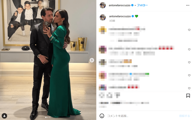 「最も美しいカップル」メッシ、幼なじみのインフルエンサー妻と密着ドレスアップ写真公開「なんてハンサムなの」 (3/3ページ) 1ページ目から読む サッカー批評編集部 海外 インテル リオネル・メッシ 2025.04.05 ■【画像】メッシ、幼なじみのインフルエンサー妻と密着ドレスアップ写真「なんてハンサムなの」 世界中のサッカーファンにとって憧れの夫婦! ※画像はリオネル・メッシのインスタグラムより ※画像はアントネラ・ロクソのインスタグラムより この投稿をInstagramで見る Leo Messi(@leomessi)がシェアした投稿 ※画像はリオネル・メッシのインスタグラムより 【この画像の記事に戻る】 1 2 3 さっかーひひょうへんしゅうぶ サッカー批評編集部 1998年4月に創刊。「素晴らしいプレーと拮抗する興奮を、言葉で伝えることができたらと思う。サッカーをプレーする時、観戦する時と同様の情熱を持って、読んでもらえることを願っている」という創刊時の精神をそのままにWebでも記事を展開。日本サッカー協会100周年にあたっての「JFA100周年表彰」の媒体賞を受賞。 関連記事 「理想のスタイル」サッカー日本代表・堂安律の美人妻、ポニーテール&ヘソ出しウェアでピラティス「骨ストですかね」美ボディに羨望の声 サッカー批評編集部 「ほんっとにかわいいいいい!」サッカー日本代表・堂安律の美人妻、“飾らない姿”でもオーラ全開!美の秘訣を伝授「見ていて飽きない」 サッカー批評編集部 「2人の笑顔が浮かびます」サッカー日本代表・堂安律の美人妻、“セレブ感たっぷり”手料理公開に反響「 自撮りは上手なのに…」ギャップに指摘も サッカー批評編集部 「ガクくんそっくり!」『仮面ライダー鎧武/ガイム』佐野岳の双子イケメン弟・プロサッカー選手の佐野渓、美人妻とキスも…アツアツなウェディングフォト公開! サッカー批評編集部