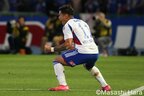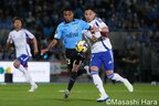 マリノスがボールを握り、川崎が構える、という時間が続く。すると41分、右サイドからドリブルで切り込んだヤン・マテウスがエリア外からグラウンダーのシュートを放つと、ボールは縦に並ぶ形となったディフェンダーの股下を通り抜けてゴールへ。1-1で後半に突入することになった。