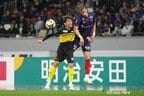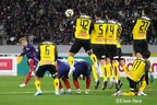 安斎颯馬のFKはいい感じで壁を越えていったが、バーの左に当たってしまった。