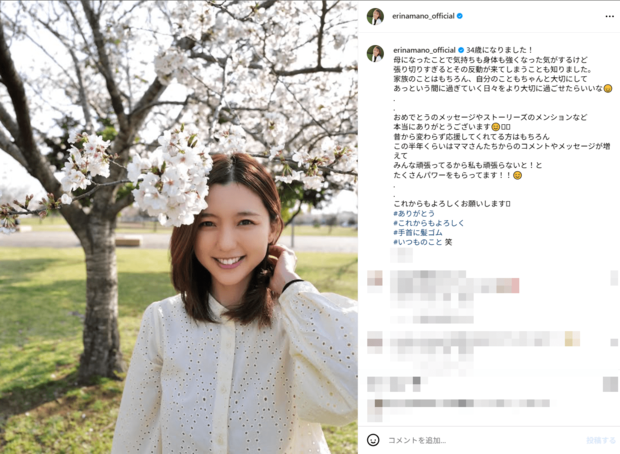 「女神のように美しい」元サッカー日本代表の鹿島アントラーズMF柴崎岳の美人アイドル妻、“34歳の誕生日報告”近影に反響「こんな可愛いママいいな〜」 (3/3ページ) 1ページ目から読む サッカー批評編集部 J1 鹿島アントラーズ 2025.04.17 ■【画像】「女神のように美しい」34歳になった柴崎岳の美人アイドル妻の近影が可愛すぎる! いくつになっても、相変わらずキュートな魅力たっぷり! ※画像は真野恵里菜のインスタグラムより この投稿をInstagramで見る 真野恵里菜 Erina Mano(@erinamano_official)がシェアした投稿 ※画像は真野恵里菜のインスタグラムより 【この画像の記事に戻る】 1 2 3 さっかーひひょうへんしゅうぶ サッカー批評編集部 1998年4月に創刊。「素晴らしいプレーと拮抗する興奮を、言葉で伝えることができたらと思う。サッカーをプレーする時、観戦する時と同様の情熱を持って、読んでもらえることを願っている」という創刊時の精神をそのままにWebでも記事を展開。日本サッカー協会100周年にあたっての「JFA100周年表彰」の媒体賞を受賞。 関連記事 「ママになってますます綺麗に」元サッカー日本代表の鹿島アントラーズMF柴崎岳の美人アイドル妻、ゆる巻き髪の最新ショット公開&子どもの成長明かす サッカー批評編集部 「血を受け継いでおる…!」元サッカー日本代表の鹿島アントラーズMF柴崎岳の美人アイドル妻、我が子への“英才教育”に反響「ムチムチがたまらない」 サッカー批評編集部 元サッカー日本代表の鹿島アントラーズMF柴崎岳の美人アイドル妻、親子で新年初の推し活!熱狂オタぶりに反響「納得とか同意とか親近感とかいろいろ伝わってくる」 サッカー批評編集部 「可愛い」「素敵な家族写真」女優・真野恵里菜と鹿島MF柴崎岳との「サンタ&トナカイになりきり幸せ夫婦ショット」がかわいすぎる!「可愛いすぎ」と2万5千いいねの大反響 サッカー批評編集部