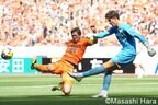 元サッカー日本代表で、エースの乾貴士がスペースに顔を出すものの、チームとしての勢いや攻撃の形を作ることができなかった。一方の名古屋は、同じく元日本代表の永井謙佑が前線からの守備でも積極性を発揮。乾と永井がボールを競り合う場面も見受けられた。