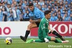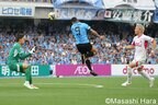 その後、コーナーキックをドンピシャのタイミングでヘディングシュートした山田新だったが、セレッソGK福井光輝が好セーブ。その直前にも惜しいシュートを放っていた山田は、頭を抱えて悔しがった。