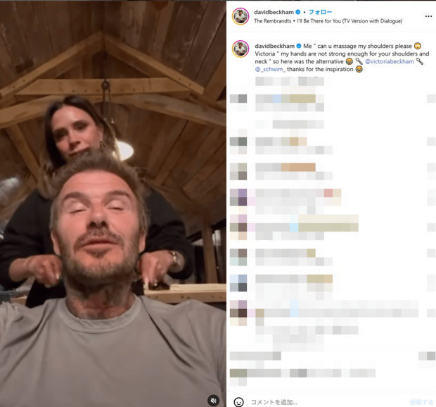 「ウケる」元イングランド代表デヴィッド・ベッカム、元スパイス・ガールズ妻に“マッサージをおねだり”激レアプラベ動画が沸騰 (3/3ページ) 1ページ目から読む サッカー批評編集部 海外 イングランド代表 2025.05.21 ■【画像】ビクトリアがベッカムを巨大スプーンで…激レア“マッサージ”シーン ユーモアに富んだビクトリアがいれば、今後もベッカム家は安泰かも。いつまでもラブラブ夫婦でいてほしい! ※画像はデヴィッド・ベッカムのインスタグラムより この投稿をInstagramで見る David Beckham(@davidbeckham)がシェアした投稿 ※画像はデヴィッド・ベッカムのインスタグラムより 【この画像の記事に戻る】 1 2 3 さっかーひひょうへんしゅうぶ サッカー批評編集部 1998年4月に創刊。「素晴らしいプレーと拮抗する興奮を、言葉で伝えることができたらと思う。サッカーをプレーする時、観戦する時と同様の情熱を持って、読んでもらえることを願っている」という創刊時の精神をそのままにWebでも記事を展開。日本サッカー協会100周年にあたっての「JFA100周年表彰」の媒体賞を受賞。 関連記事 「すごいコンボ」離婚危機&薬物使用疑惑のジャスティン・ビーバー、元イングランド代表FWウォルコットとの2ショットに「奥さんと一緒だった時より幸せそう」の声も サッカー批評編集部 「最高のカップル」ベッカム長男、妻との結婚3周年のお祝いで“メッセージタトゥー”公開 次男が長男の元カノと交際で不仲説も浮上 サッカー批評編集部 「すごく嫌そう」元イングランド代表デヴィッド・ベッカム、美少女すぎると話題の13歳末娘に公開キスを迫るも拒否される衝撃シーン サッカー批評編集部 「なんて美しい女の子なんだ」13歳ベッカム末娘、世界最強パッキャオTシャツでNBA観戦!人気ラッパーとの2ショットも…「痩せたね」「似てきた」「最高の父と娘」 サッカー批評編集部