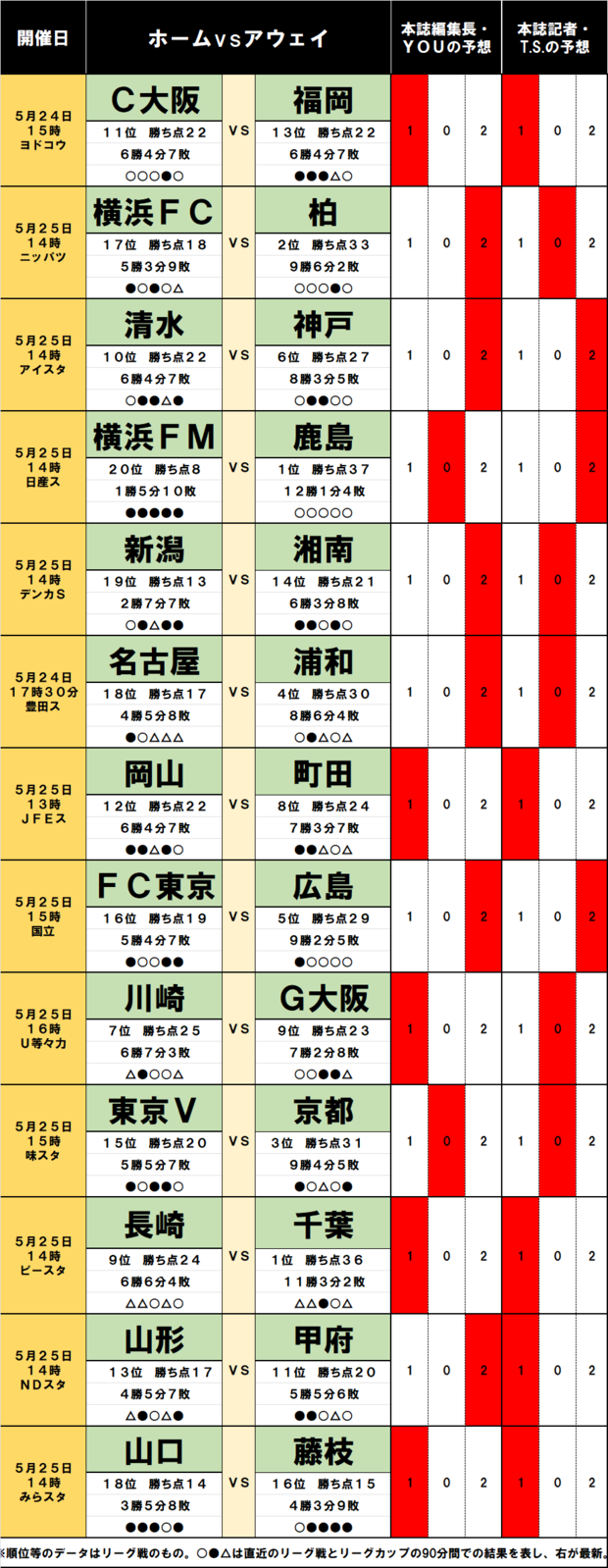サッカーくじ「toto」予想(第1541回)5月24・25日(2)4位の浦和と降格圏の名古屋「まさかの結末」、2位の柏を待ち受ける「落とし穴」、 京都と東京Vは「3試合連続」濃厚か (3/3ページ) 1ページ目から読む サッカー批評編集部 J1 J2 浦和レッズ 京都サンガF.C. 名古屋グランパス 2025.05.23 ■【画像】100円で「億獲り」のチャンス『サッカー批評』編集部「5月24・25日のJ1、J2」toto予想はコチラ↓ 画像/サッカー批評WEB編集部 【この画像の記事に戻る】 1 2 3 さっかーひひょうへんしゅうぶ サッカー批評編集部 1998年4月に創刊。「素晴らしいプレーと拮抗する興奮を、言葉で伝えることができたらと思う。サッカーをプレーする時、観戦する時と同様の情熱を持って、読んでもらえることを願っている」という創刊時の精神をそのままにWebでも記事を展開。日本サッカー協会100周年にあたっての「JFA100周年表彰」の媒体賞を受賞。 関連記事 【超過密日程で浦和との死闘。川崎はなぜ終了間際に白星を落としたのか?(2)】エリソン負傷で攻撃陣に不安も、若き才能・大関らに期待。後半に見せた”川崎らしさ”をどう勝利につなげていくべきか? 「まだ20歳だけどフロンターレの大関まじで良いって」川崎の劇的ゴールを生み出した天才20歳MFのサイドチェンジがスゴすぎる!「完璧な崩し」「美しい流れ」の声 「スッピンでも可愛すぎる」元サッカー日本代表の鹿島アントラーズ柴崎岳の美人アイドル妻、“若見え前髪”&ルームウエア姿に絶賛の声 サッカー批評編集部 【サポーターアルバム】浦和相手に連勝止まるも、悔しさを声援に変えた「川崎フロンターレのサポーターの試合後の写真41枚!「川崎フロンターレー浦和レッズ」