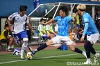 風上をとった横浜FCがロングボールを櫻川ソロモンに集めて、ゴールに近づいていった。