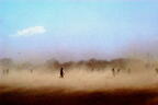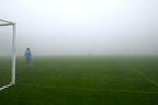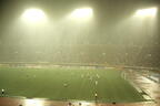 しかし、当時のJリーグはそれでは終わらせてくれない。どちらかが点を取った時点で終わる「ゴールデンゴール」方式の延長戦に突入する。その延長前半4分、突然激しい雨が降り始め、さらに大粒の雨になり、雷鳴も聞こえ始めた(【写真09】)。それでも試合は続行し、結局、どちらにもゴールが生まれないまま結局30分間が終了した。3万1056人のファンは、生きた心地がしなかったのではないか。
