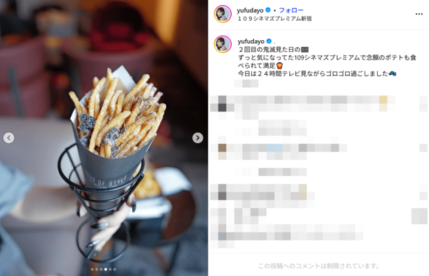 日本代表FW上田綺世の美人モデル妻、“ポテト1600円”の高級映画館で『鬼滅』鑑賞報告!『シャネル』バッグが目を引くガーリーコーデに「素敵すぎ!!」羨望の声 (3/3ページ) 1ページ目から読む サッカー批評編集部 海外 日本代表 上田綺世 2025.09.09 ■【画像】上田綺世の美人モデル妻、“ポテト1600円”の高級映画館で『鬼滅』鑑賞報告!『シャネル』バッグが目を引くガーリーコーデが沸騰 高級映画館での映画鑑賞の様子をレポートした上田綺世の妻・由布菜月。1600円のポテトの味が気になる! ※画像は由布菜月のインスタグラムより、以下同 この投稿をInstagramで見る 由布菜月 / Natsuki Yufu(@yufudayo)がシェアした投稿 【この画像の記事に戻る】 1 2 3 さっかーひひょうへんしゅうぶ サッカー批評編集部 1998年4月に創刊。「素晴らしいプレーと拮抗する興奮を、言葉で伝えることができたらと思う。サッカーをプレーする時、観戦する時と同様の情熱を持って、読んでもらえることを願っている」という創刊時の精神をそのままにWebでも記事を展開。日本サッカー協会100周年にあたっての「JFA100周年表彰」の媒体賞を受賞。 関連記事 「透明感すごい」日本代表FW上田綺世の美人モデル妻、あざと可愛い浴衣ショットに「可愛すぎて、、天使すぎる」 サッカー批評編集部 日本代表FW上田綺世の美人モデル妻、山脈ヘア&韓国美女メイクで“別人級”激変!夫から“謎コメント”も「本当に女神です」「透明感凄すぎる」 サッカー批評編集部 「スタイル良すぎる」日本代表FW上田綺世の美人モデル妻、ちゅん顔&ウエストほっそりヘソ出し私服姿が可愛すぎると話題に サッカー批評編集部 「かわいすぎて尊いです」日本代表FW上田綺世の美人モデル妻、挙式から2年…秘蔵動画公開「ウェディング姿美しすぎる」お色直しはシックな装い サッカー批評編集部