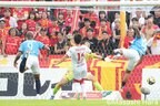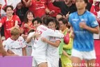 ラスト5試合。1戦1戦の重要度が増す中、立ち上がりに主導権を握ったのは名古屋。中盤の守備力で上回りボールを握ると、マテウスや和泉竜司がチャンスを作り出す。そして前半6分にはコーナーキックからゴールネットを揺らす。しかし、VARチェックの末にオフサイド判定でゴール取り消しに。すると前半20分、横浜FCが左サイドから福森晃斗が“伝家の宝刀”左足クロスをゴール前に放り込み、櫻川ソロモンが頭で合わせて先制に成功する。