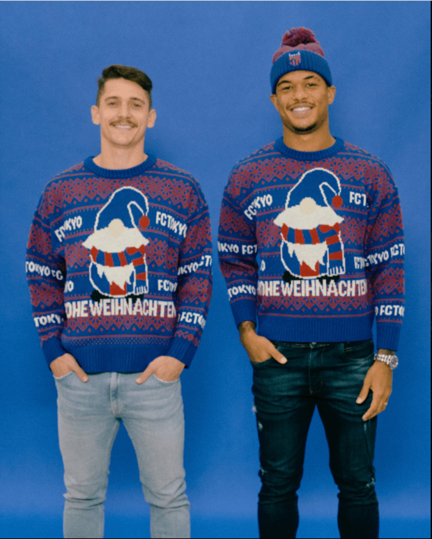 ■【画像】「秀逸なデザイン」「チームへの忠誠が試されてる?」「モデルの二人が絶妙」FC東京が作成した新グッズ「ダサかわセーター」