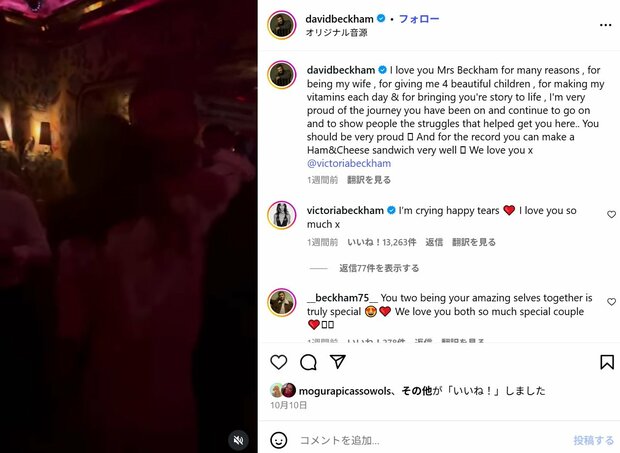 ■【画像】「なんて素敵な男性なの」ベッカム、摂食障害告白の妻・ヴィクトリアに贈る愛の言葉&熱烈ハグ動画