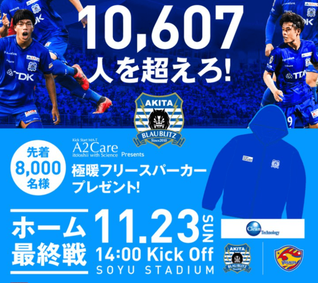 ■【画像】「ほすぃー」「この時期すごく重宝するはず」J2秋田がホーム最終戦で先着8000人にプレゼントする「極暖」フリースパーカー