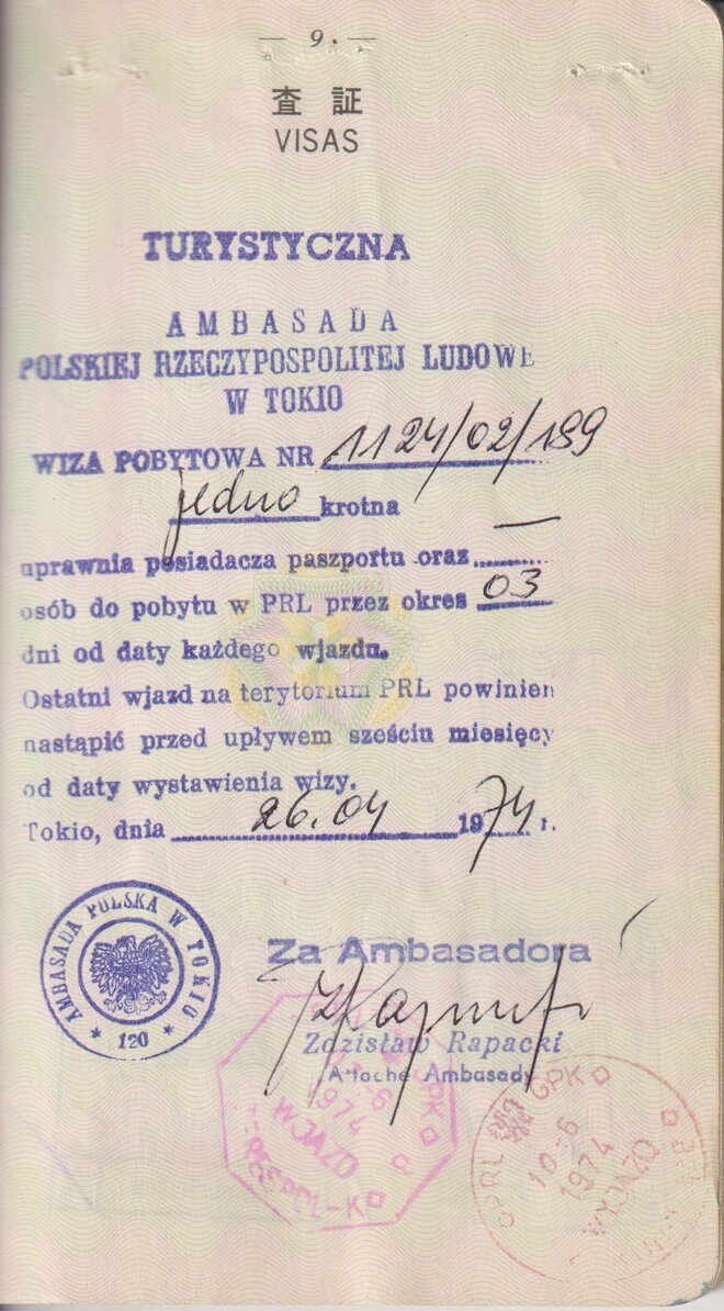 今の旅券は世界共通のB7版サイズですが、僕が最初にとってパスポートは縦に長い版のものでした。紺色の表紙に篆書体の「日本国旅券」文字と菊の紋章が入っているのは今と同じ。もちろん、ICチップなどは搭載されておらず(そんなものは存在もしなかった)、写真は持参した紙焼きの白黒写真をそのまま貼りつけて割印が捺されています。