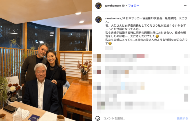 「夫婦顔が似てるね」元なでしこ澤穂希、両親以外で交際&結婚を報告していた“唯一の人物”とイケオジ夫との3ショット公開 (3/3ページ) 1ページ目から読む サッカー批評編集部 なでしこジャパン 2025.11.29 ■【画像】「夫婦顔が似てるね」澤穂希、両親以外で交際&結婚を報告していた“唯一の人物”とイケオジ夫との3ショット 少し前の投稿では、旅番組『あこがれの絶景クルーズ旅』(BS10)に夫婦で出演した際の様子を披露した澤。その仲良し2ショットに多くの絶賛コメントが寄せられた。 ※画像は澤穂希のインスタグラムより、以下同 この投稿をInstagramで見る 澤穂希(@sawahomare_10)がシェアした投稿 【この画像の記事を読む】 1 2 3 さっかーひひょうへんしゅうぶ サッカー批評編集部 1998年4月に創刊。「素晴らしいプレーと拮抗する興奮を、言葉で伝えることができたらと思う。サッカーをプレーする時、観戦する時と同様の情熱を持って、読んでもらえることを願っている」という創刊時の精神をそのままにWebでも記事を展開。日本サッカー協会100周年にあたっての「JFA100周年表彰」の媒体賞を受賞。 関連記事 2G1Aでは不満⁉4ゴールに絡んで20歳のなでしこ至宝MF谷川萌々子が圧巻パフォーマンス!「1人で試合壊す活躍…」「エグすぎる」「ブーストしとる」 サッカー批評編集部 なでしこ切り札“サッカー界のレディー・ガガ”、まるで海外セレブなオレンジヘアのドレスアップショットで圧倒的オーラ放つ サッカー批評編集部 「うん別人かも」丸山桂里奈のなでしこジャパン時代の“勇姿”に愛娘は「ママじゃないよ」と断言!?「大きくなったらママの偉大さが分かると思いますよ!」と励ましの声 サッカー批評編集部 「わ!声出ましたよ!」「世界一可愛いです」元日本代表・稲本潤一の美人モデル妻、うるうる唇の半年ぶり近影に沸く サッカー批評編集部