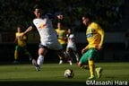 両チームとも気迫十分の中で迎えたキックオフ。立ち上がりは、ホームのスタンドを黄色に染めたサポーターの大声援を背に千葉が猛攻を見せる。強度の高い球際でのプレーでボールを奪い、勢い良く前進し、積極的にシュートを放って大宮ゴールを脅かした。