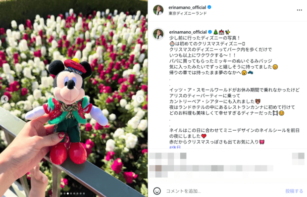 「素敵な写真」元日本代表のJ1鹿島MF柴崎岳の美人アイドル妻、我が子と初クリスマスディズニーへ! “パパに買ってもらった”プレゼントと“かわいい写り込み”も (3/3ページ) 1ページ目から読む サッカー批評編集部 J1 鹿島アントラーズ 柴崎岳 2025.12.11 ■【画像】柴崎岳の美人アイドル妻、我が子と初クリスマスディズニーへ !“パパに買ってもらった”プレゼントと“かわいい写り込み”も 母親として、妻として、そして女優として大活躍の真野恵里菜。多くのファンが注目している。 ※画像は真野恵里菜のインスタグラムより、以下同 【この画像の記事を読む】 1 2 3 さっかーひひょうへんしゅうぶ サッカー批評編集部 1998年4月に創刊。「素晴らしいプレーと拮抗する興奮を、言葉で伝えることができたらと思う。サッカーをプレーする時、観戦する時と同様の情熱を持って、読んでもらえることを願っている」という創刊時の精神をそのままにWebでも記事を展開。日本サッカー協会100周年にあたっての「JFA100周年表彰」の媒体賞を受賞。 関連記事 「言うてもやっぱり可愛い」元日本代表・稲本潤一の美人モデル妻、体型変化とワンオペ育児告白で好感度爆上がり「これがワーママの実態」 サッカー批評編集部 「加藤ローサかと思った!」浦和MF渡邊凌磨の元“おはガール”妻、可愛さ&ハンサム意識の新ヘアで雰囲気ガラリ「透明感あって美人さん増し増し」 サッカー批評編集部 「やっぱり可愛い!」元日本代表のJ1鹿島MF柴崎岳の美人アイドル妻、家族旅行中の“ばっちりメイク近影”が沸騰「さすがアントラーズ」な驚きの遭遇も! サッカー批評編集部 「スッピンでも可愛すぎる」元サッカー日本代表の鹿島アントラーズ柴崎岳の美人アイドル妻、“若見え前髪”&ルームウエア姿に絶賛の声 サッカー批評編集部