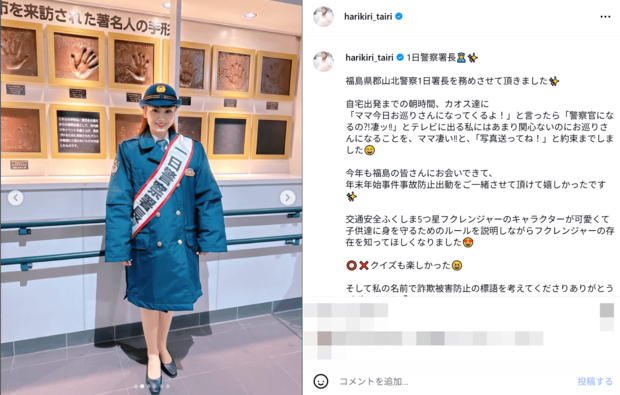 「ブラボー!」「可愛すぎて、平和になるかも」日本代表DF長友佑都の美人妻・平愛梨、スラリ脚のぞく1日警察署長姿が沸騰「逮捕してください」 (3/3ページ) 1ページ目から読む サッカー批評編集部 J1 日本代表 FC東京 長友佑都 2025.12.17 ■【画像】長友佑都の美人妻・平愛梨、スラリ脚のぞく1日警察署長姿 また、12月12日は平の41歳の誕生日ということで、長友選手は自身のインスタグラムで《Happy birthday》とつづり、仲むつまじい家族ショットを公開したことでも話題となった。 ※画像は平愛梨のインスタグラムより 【この画像の記事を読む】 1 2 3 さっかーひひょうへんしゅうぶ サッカー批評編集部 1998年4月に創刊。「素晴らしいプレーと拮抗する興奮を、言葉で伝えることができたらと思う。サッカーをプレーする時、観戦する時と同様の情熱を持って、読んでもらえることを願っている」という創刊時の精神をそのままにWebでも記事を展開。日本サッカー協会100周年にあたっての「JFA100周年表彰」の媒体賞を受賞。 関連記事 「職質受けてみたい」元ヤングなでしこ仲田歩夢、白い歯輝く警察官制服姿が沸騰「ポスターが盗難されそう」心配の声も サッカー批評編集部 「美が爆発」日本代表DF長友佑都の美人妻・平愛梨、モデル撮影ショットで雰囲気ガラリ「大人の女って感じ」 サッカー批評編集部 「鼻のハイライト入れすぎた」日本代表MF堂安律の美人妻、メイク失敗に自虐も“素肌にエルメス”上級着こなしテクに賛辞「今日も美しいです」 サッカー批評編集部 「人類、、最っっっ強の姉妹」「神的、可愛い」日本代表DF長友佑都の美人妻・平愛梨が“久々の姉妹時間”公開 サッカー批評編集部 「わ!声出ましたよ!」「世界一可愛いです」元日本代表・稲本潤一の美人モデル妻、うるうる唇の半年ぶり近影に沸く サッカー批評編集部 「かわいしゅぎますって」日本代表FW上田綺世の美人モデル妻、“キティちゃんカチューシャ姿”でピューロランド満喫 サッカー批評編集部 「透明感やばい可愛すぎ」「どこのプリンセスかと」日本代表FW上田綺世の美人モデル妻、結婚式お呼ばれドレスアップコーデが沸騰 サッカー批評編集部