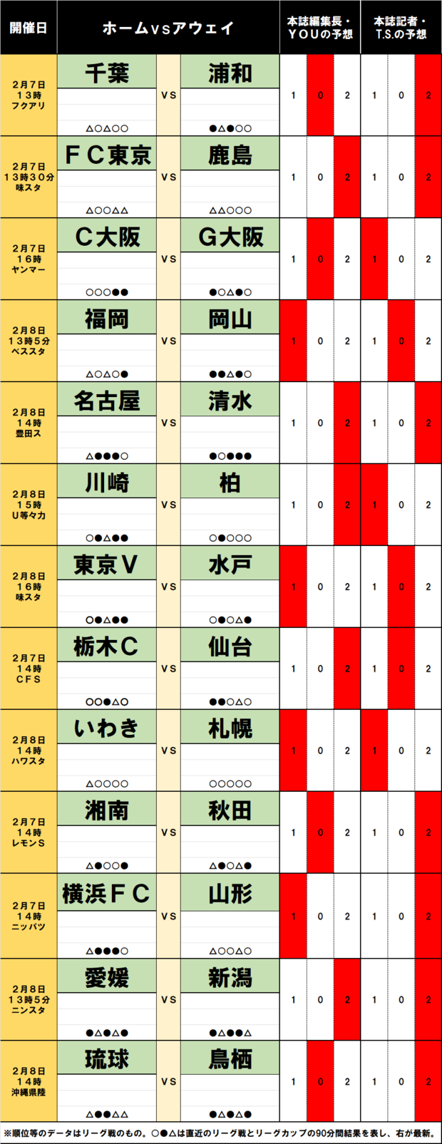 サッカーくじ「toto予想」(第1608回)2月7・8日(2)水戸「歴史的な初陣」で勝ち点ゲット!J2降格クラブ「過去9チーム」は五分と五分 (3/3ページ) 1ページ目から読む サッカー批評編集部 J1 J2 水戸ホーリーホック 湘南ベルマーレ 横浜FC Jリーグ 2026.02.06 ■【画像】100円で「億獲り」のチャンス『サッカー批評』編集部「2月7・8日のJ1、J2・J3百年構想リーグ」toto予想はコチラ↓ 画像/サッカー批評WEB編集部 この画像の記事に戻る 1 2 3 さっかーひひょうへんしゅうぶ サッカー批評編集部 1998年4月に創刊。「素晴らしいプレーと拮抗する興奮を、言葉で伝えることができたらと思う。サッカーをプレーする時、観戦する時と同様の情熱を持って、読んでもらえることを願っている」という創刊時の精神をそのままにWebでも記事を展開。日本サッカー協会100周年にあたっての「JFA100周年表彰」の媒体賞を受賞。 サッカーくじ「toto予想」(第1608回)2月7・8日 サッカーくじ「toto予想」(第1608回)2月7・8日(1)王者・鹿島「翌シーズン初戦」驚異の勝率!名古屋ペトロヴィッチ監督「新天地初戦」のジンクス! 関連記事 サッカーくじ「toto予想」(第1608回)2月7・8日(1)王者・鹿島「翌シーズン初戦」驚異の勝率!名古屋ペトロヴィッチ監督「新天地初戦」のジンクス! サッカー批評編集部 従来との違いは「地域リーグラウンド」!難点は王者・鹿島や2位・柏を「西日本で生観戦できない」こと【Jリーグが初挑戦「百年構想リーグ」大検証】(1) 後藤健生 選手層の薄い&資金力に乏しい「弱小クラブ優勝」の可能性も!短期決戦は「サプライズ」必至【Jリーグが初挑戦「百年構想リーグ」大検証】(2) 後藤健生 PK戦決着で「引き分け狙い」激増か、J3クラブに夢を与える「勝点2」の新ルール【Jリーグが初挑戦「百年構想リーグ」大検証】(3) 後藤健生 「増えた」消極的な試合、「優勝を狙いたい」J1EAST3チーム、新監督が「日本初采配」の広島やG大阪は【Jリーグが初挑戦「百年構想リーグ」大検証】(4) 後藤健生 「“Yui Hasegawa Challenge”って言うらしい」長谷川唯の大バズり妙技“空中ウォークリフティング”が他クラブでも流行!?「ベレーザ出身者はできるんですね」 サッカー批評編集部 「やったぞ!」「お唯いぃ~」長谷川唯の試合直後の“歓喜のスマイル&ガッツポーズ”が可愛い! ライバルとの直接対決に圧勝「悲願のリーグ優勝にかなり近づいた」 サッカー批評編集部 「タッタタラリラ〜♪」「夢の共演」J1清水が地元を舞台にした国民的アニメとのコラボ企画スタート!「背番号はまる子だから05なのか!」「キーホルダー欲しい!」 サッカー批評編集部