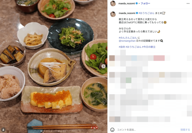 「天才」「おうちご飯に思えない」浦和MF渡邊凌磨の元“おはガール”妻、ChatGPT活用のアスリート飯に反響「旦那さん幸せ過ぎません?」 (3/3ページ) 1ページ目から読む サッカー批評編集部 J1 浦和レッズ 2026.02.12 ■【画像】浦和・渡邊凌磨の元“おはガール”妻と、ChatGPT活用のアスリート飯 献立専用のアカウントは、まるでレストランのメニューのようなバラエティに富んだ料理で埋め尽くされている。愛情たっぷりの料理が渡邉の好プレーにつながっているのは間違いないだろう。 ※画像は前田希美のインスタグラムより、以下同 【この画像の記事に戻る】 1 2 3 さっかーひひょうへんしゅうぶ サッカー批評編集部 1998年4月に創刊。「素晴らしいプレーと拮抗する興奮を、言葉で伝えることができたらと思う。サッカーをプレーする時、観戦する時と同様の情熱を持って、読んでもらえることを願っている」という創刊時の精神をそのままにWebでも記事を展開。日本サッカー協会100周年にあたっての「JFA100周年表彰」の媒体賞を受賞。 関連記事 「美容系兼二郎系YouTuber笑」浦和MF渡邊凌磨の元“おはガール”妻、もぐもぐラーメン動画が大好評!2時間行列に並ぶガチ勢ぶりで路線変更? サッカー批評編集部 浦和MF渡邊凌磨の元“おはガール”妻、メリハリスタイル際立つレギンス姿でペット同伴ジムでの“トレーニング初め”を報告 サッカー批評編集部 「最強の美男美女夫婦」浦和MF渡邊凌磨の元“おはガール”妻、「おきにのユニクロデニム」が主役の夫婦モノトーンデートコーデがスタイリッシュ! サッカー批評編集部 「お人形さんかと」「綺麗すぎて鳥肌たった」浦和MF渡邊凌磨の元“おはガール”妻、オーラ全開ドレスアップ姿の夫婦2ショット公開 サッカー批評編集部 「久しぶりの夫婦で撮影」元日本代表・稲本潤一、妻・田中美保との密着2ショが沸騰「美保ちゃん、変わらず本当に可愛いです」 サッカー批評編集部 「言うてもやっぱり可愛い」元日本代表・稲本潤一の美人モデル妻、体型変化とワンオペ育児告白で好感度爆上がり「これがワーママの実態」 サッカー批評編集部 「10満点」「おしゃれ」稲本潤一、冨安健洋らが所属したアーセナル「懐かしの復刻ユニフォーム」に、あの日本企業の名が!? サッカー批評編集部 「わ!声出ましたよ!」「世界一可愛いです」元日本代表・稲本潤一の美人モデル妻、うるうる唇の半年ぶり近影に沸く サッカー批評編集部