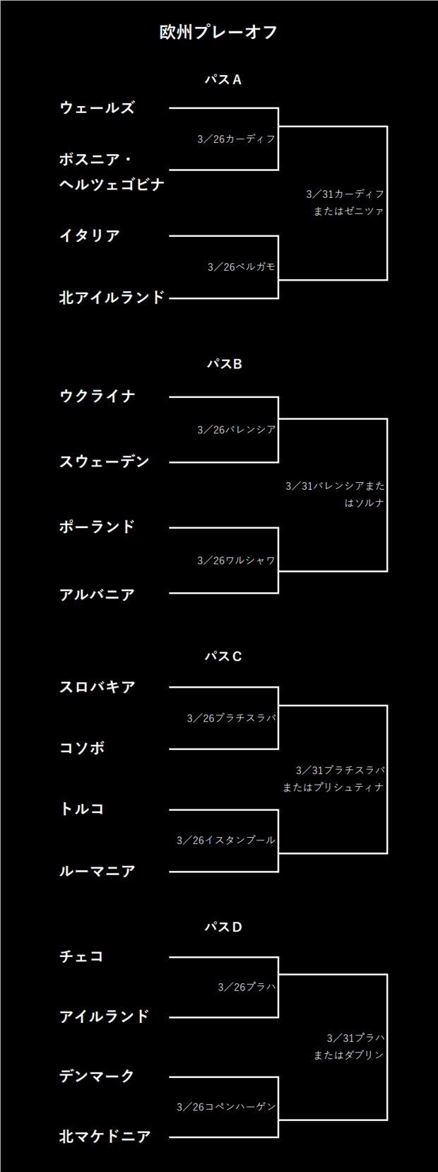 ■【画像】日本が入る「F組」の対戦相手は誰に?W杯欧州プレーオフ組み合わせ一覧表