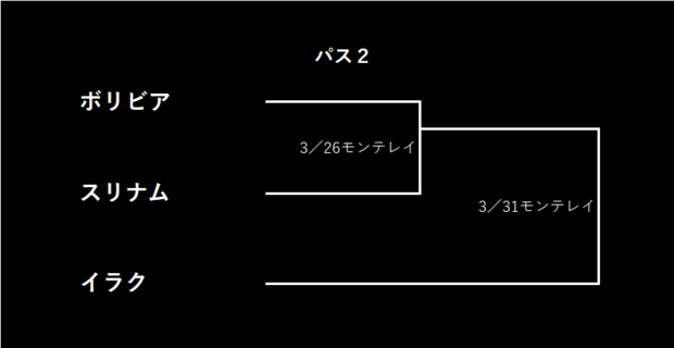 「パス2」の会場は、ワールドカップで日本代表がチュニジアと対戦するモンテレイ。1回戦は「ボリビア×スリナム」で、シードチームはイラクである。アメリカとイスラエルによるイラン攻撃で始まった中東地域の情勢悪化により、イラクは「メキシコへの移動手段を確保できない」と延期を訴えていたが、なんとか予定どおりに開催できそうだ。このパスの勝者は、ワールドカップでは「I組」に入り、ノルウェー、フランス、セネガルと対戦する。